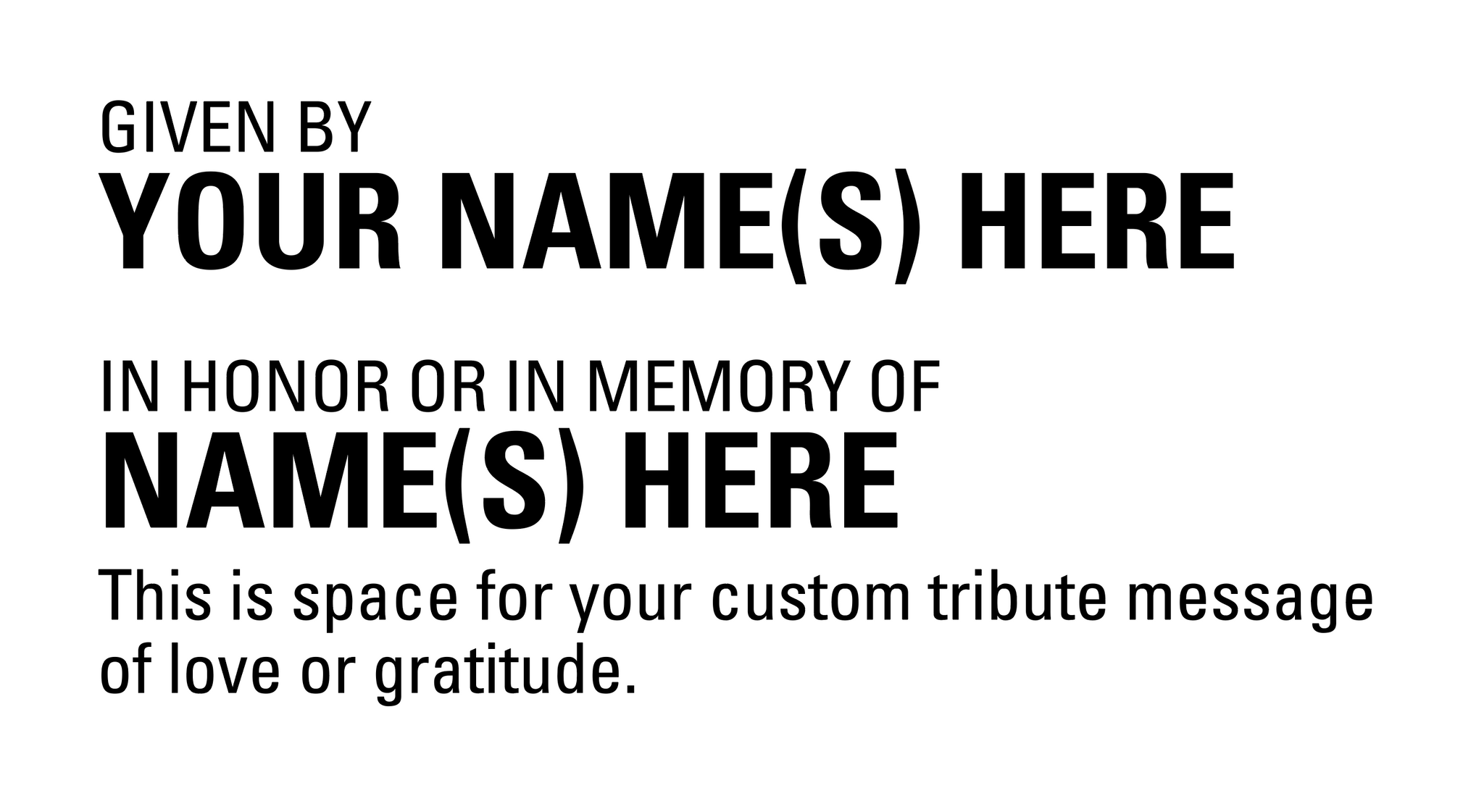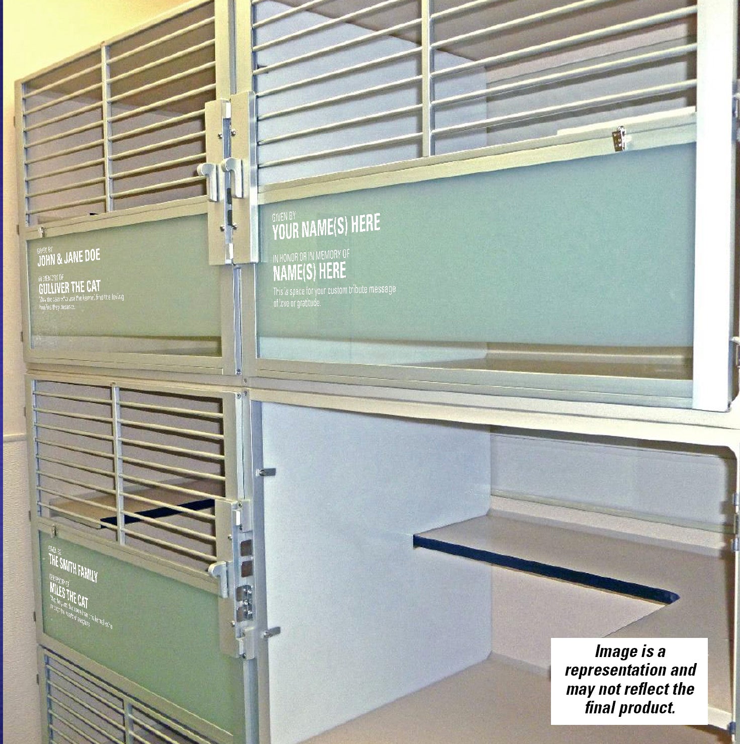 Your tribute message will be displayed on the door of a Cat Condo within the new Pet Admission & Resource Center. Each tribute will live for a 10-year period, and you will receive a special letter of recognition for your gift.